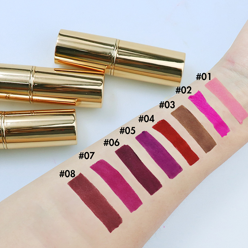 This lipstick is available for wholesale and private label customization, supporting small-batch production. It comes in eight carefully curated shades (including nudes and sensual reds), with both matte velvet and creamy textures. It's waterproof and suitable for beauty brands' bulk purchases, startups' trial runs, and personalized customization needs. The eight shades cover essential nudes for everyday makeup and sensual reds for a more dramatic look, catering to a variety of makeup scenarios. The matte velvet shade offers rich color and a luxurious finish, while the creamy shade glides on smoothly and prevents the appearance of lip lines. The waterproof formula ensures long-lasting, long-lasting makeup, balancing effectiveness and practicality. Private label customization is available, allowing for custom brand logos and packaging designs. Even small orders offer stable supply, helping merchants manage costs and inventory. Whether it's a beauty wholesaler stocking up for sales, a startup brand developing its first lipstick line, or customizing for event gifts or membership benefits, this product combines high quality, customization flexibility, and adaptability to various occasions, meeting the diverse needs of the beauty market.
